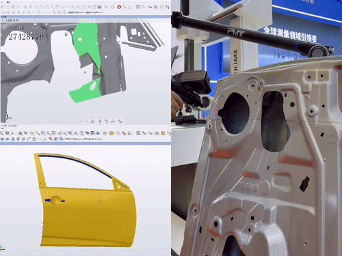 To address customer pain points in high-precision inspection of complex workpieces, PMT launched a portable CMM with blue 3D arm scanner based on a 3D measurement software. With surface fitting accuracy as high as 0.035mm, data collection efficiency of the portable measuring arm improved by over 50% compared to traditional methods. Combined with an 8-axis rotary worktable, the inspection efficiency of the 3D measuring arm further increased by more than 40%.